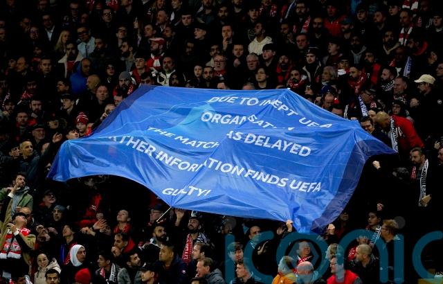 There were renewed anti-UEFA chants in the 36th minute at Anfield – the amount of time the kick-off was delayed by at the Stade de France.