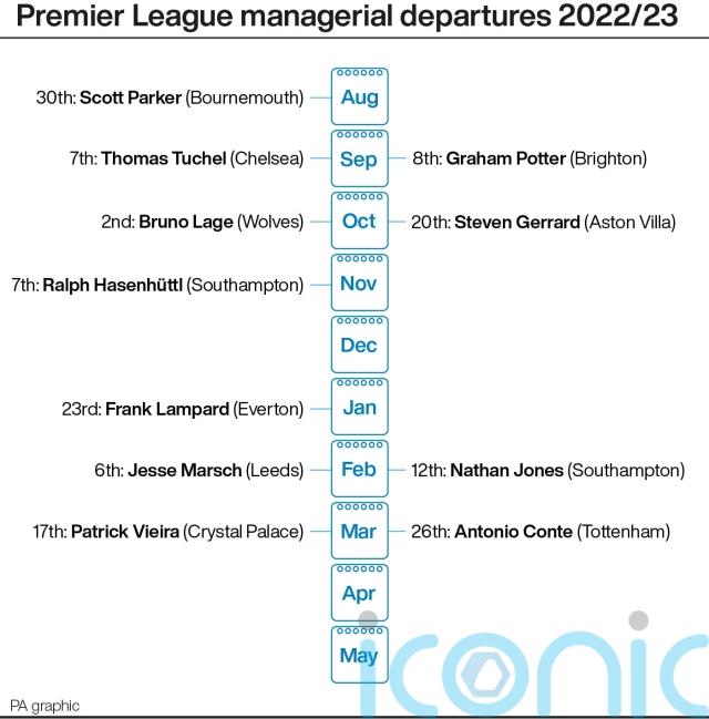 Antonio Conte’s departure from Tottenham was the 11th in the Premier League this term, a record for in-season managerial changes.