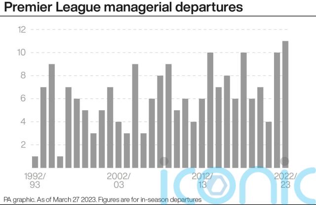 There have been three separate instances of nine in-season departures, in 1994-95 – when there were still 22 clubs in the Premier League – 2004-05 and 2008-09.