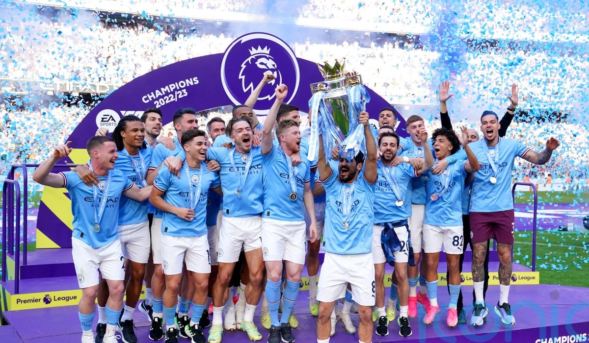 Pep Guardiola’s treble-chasing side had already been confirmed as champions for a fifth time in six seasons after Arsenal’s loss to Nottingham Forest on Saturday.