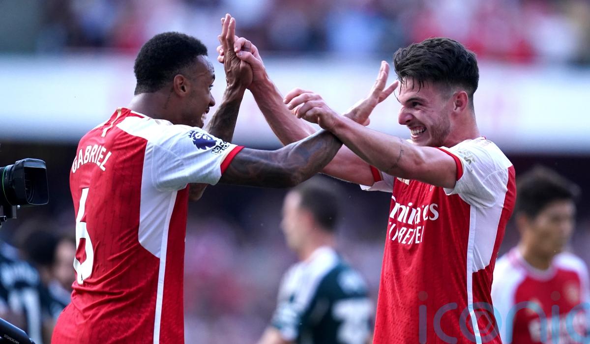 Declan Rice and Gabriel Jesus fired Arsenal to a stunning 3-1 stoppage-time victory against Manchester United as a thrill-a-minute clash came to an unforgettable conclusion.