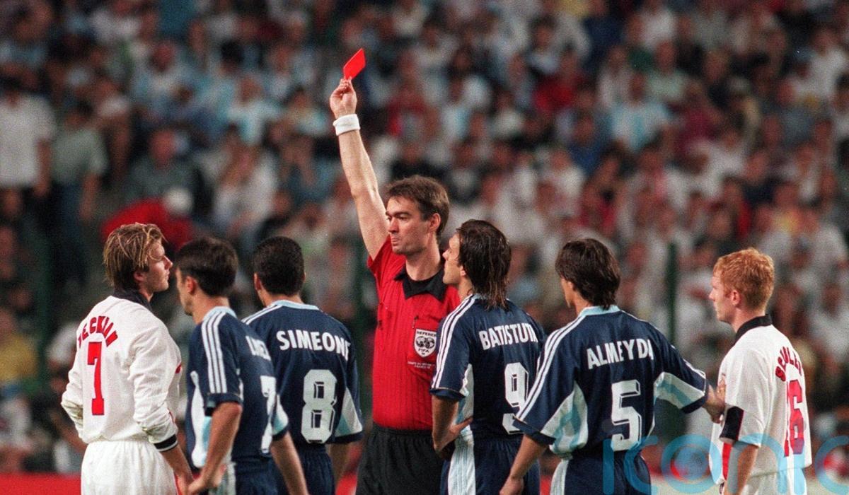 In episode two, titled ‘Seeing Red’, Beckham, now 48, reflected on the “stupid mistake” which changed his life after he was sent off for kicking the back of Diego Simeone’s leg during the last-16 clash against Argentina in Saint-Etienne.