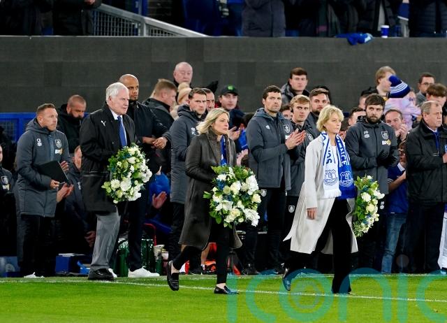 Everton paid tribute to Bill Kenwright as his long-term partner Jenny Seagrove, daughter Lucy and former Toffees striker and manager Joe Royle laid wreaths before the Carabao Cup match with Burnley.