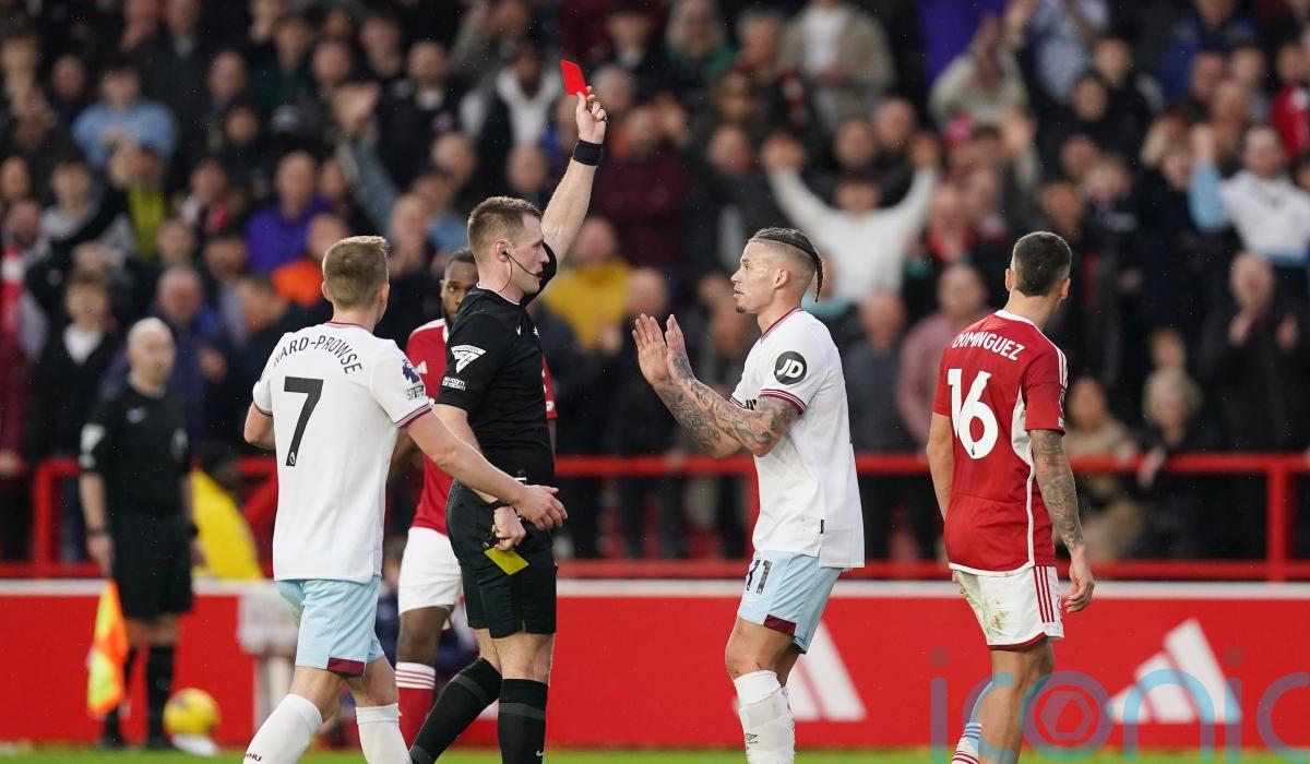 West Ham were trailing to Taiwo Awoniyi’s first-half opener when Phillips picked up two quick bookings in the second half, the first for grappling with Nicolas Dominguez and then fouling Morgan Gibbs-White.