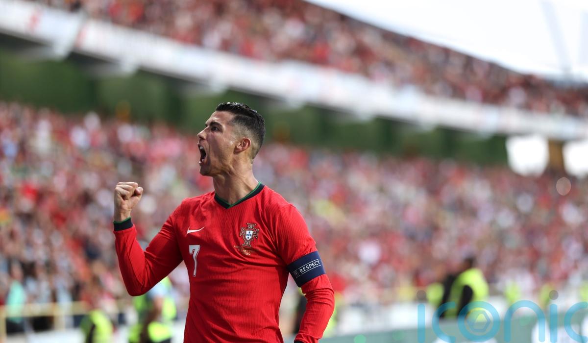 The 39-year-old, who had earlier hit the post with a deflected free-kick, marked his 207th senior cap with his 129th and 130th international goals a week before Roberto Martinez’s men launch their Group F campaign against Czech Republic in Leipzig.