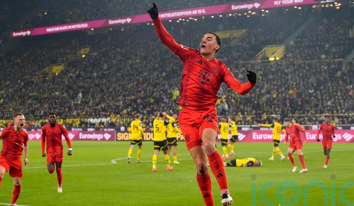 Jamal Musiala headed a late equaliser to rescue a 1-1 draw for Bayern Munich after Harry Kane was forced off injured against rivals Borussia Dortmund on Saturday.