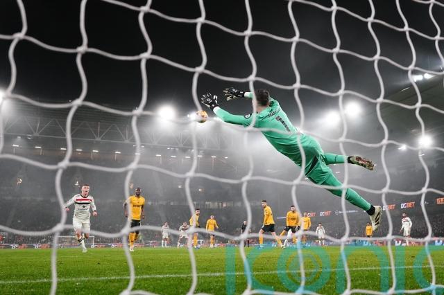 Diogo Dalot saw a curling effort from 20 yards impressively denied by Wolves goalkeeper Jose Sa, who also stopped a Lisandro Martinez header creeping in.