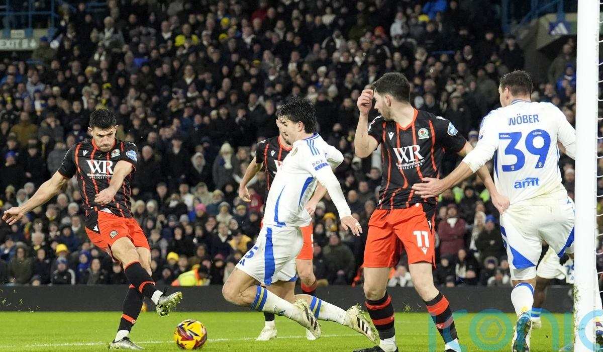 Brenden Aaronson’s curling effort flew narrowly over and Gnonto volleyed wide before referee Oliver Langford awarded Leeds an 88th-minmute penalty after Dominic Hyam was deemed to have tripped Joseph.