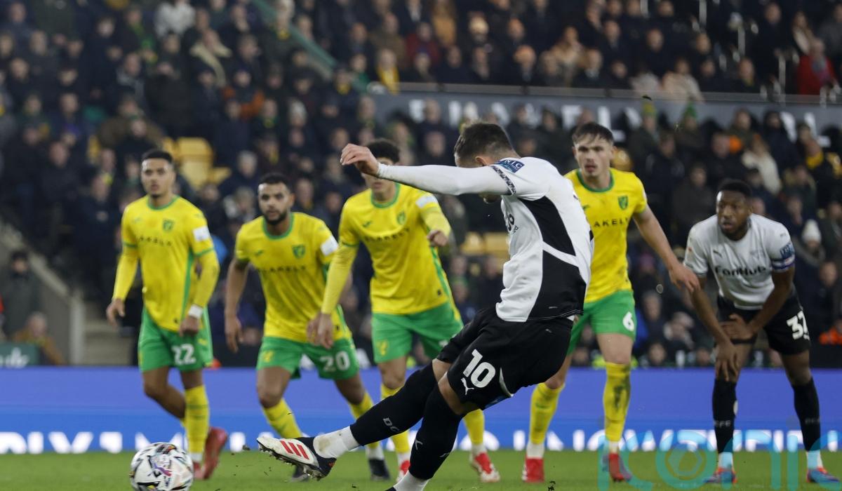 Norwich looked on course for a hard-fought win until the Rams equalised out of the blue from the penalty spot.