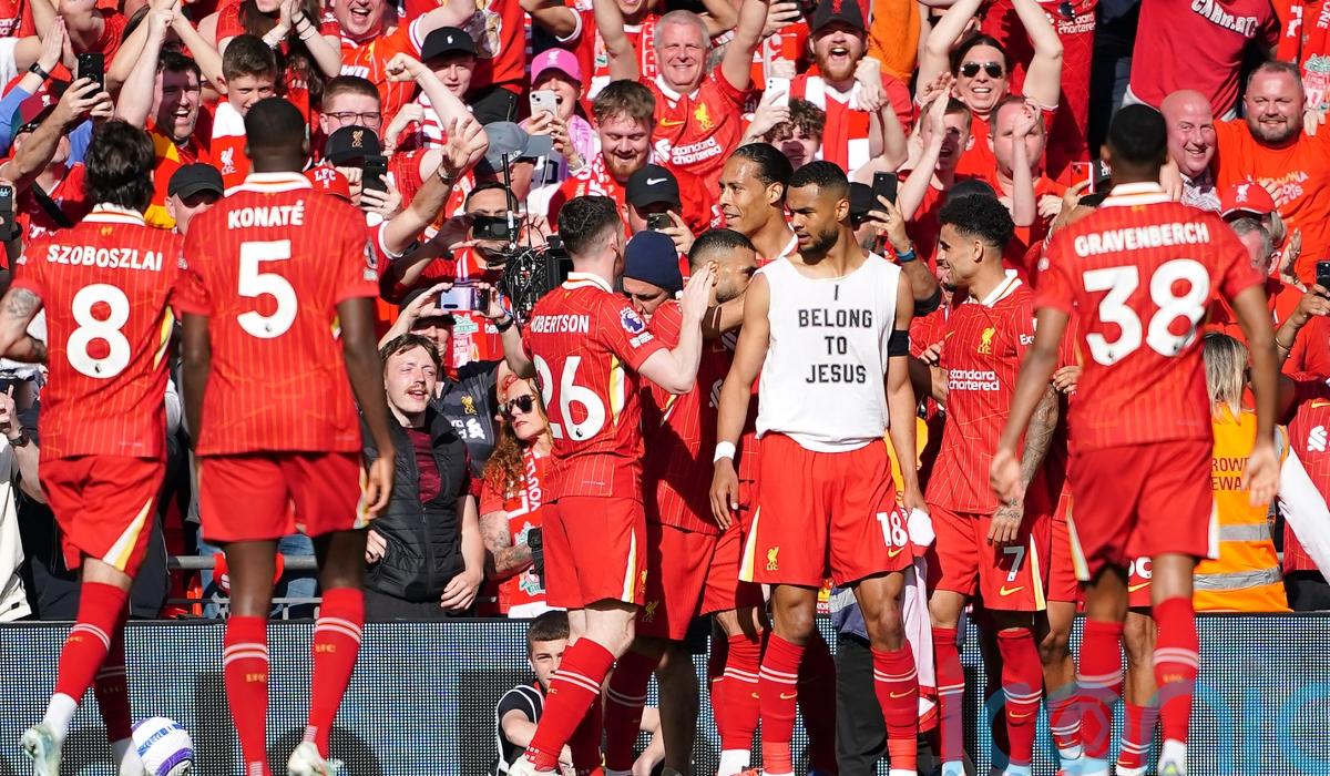First-half strikes from Luis Diaz, Alexis Mac Allister and Cody Gakpo all but wrapped up a record-equalling 20th top-flight title before Mohammed Salah’s 28th goal of a prolific campaign and a Destiny Udogie own goal made the scoreline emphatic.