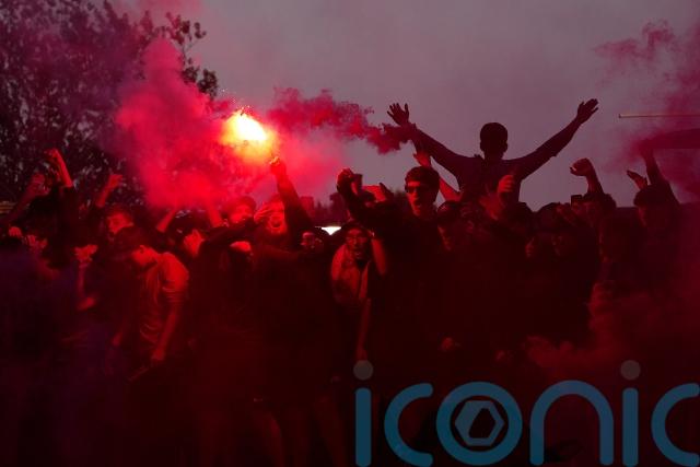 The celebrations continued outside Anfield after the game, with thousands in the street singing and waving red flares amid fireworks being set off.