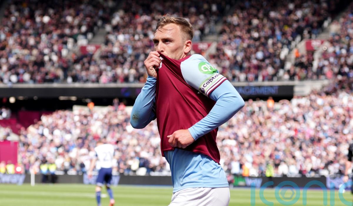 The Hammers skipper scampered into the penalty area, cut inside and slipped the ball through the legs of Spurs keeper Guglielmo Vicario at his near post.