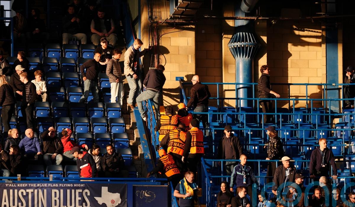 A large number of supporters of the Swedish club were seen jumping over barriers separating the home and away sections in order to join travelling fans seated in the Shed End, which typically houses away fans.