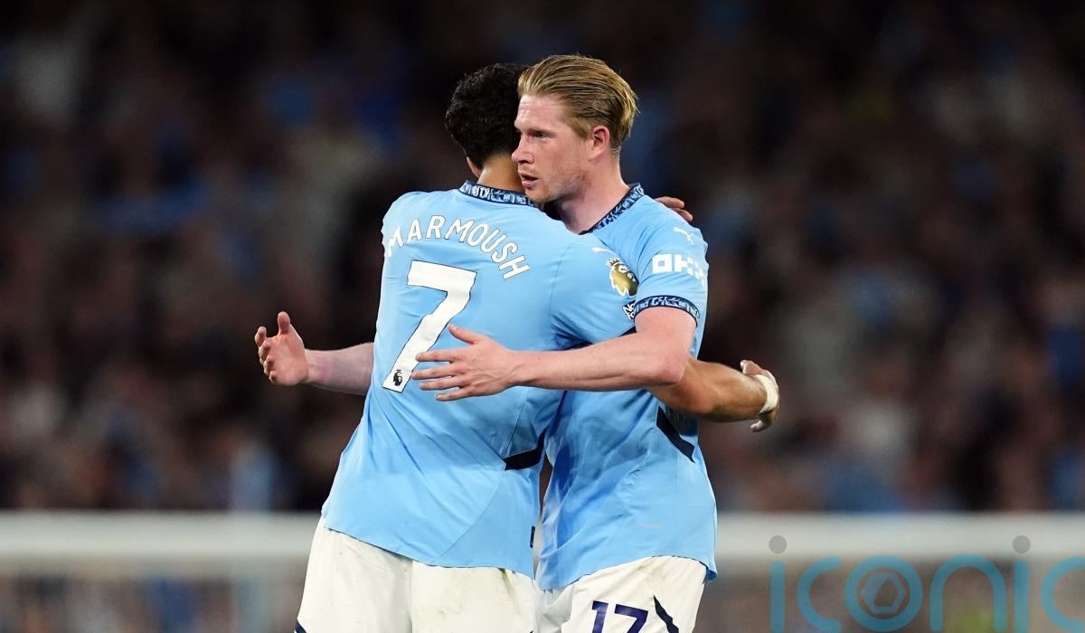 All the focus had been on De Bruyne as the 33-year-old made his 142nd and final appearance at the Etihad Stadium but it was Marmoush who stole the spotlight in the 14th minute with a stunning shot which swerved and dipped before going in off the post.