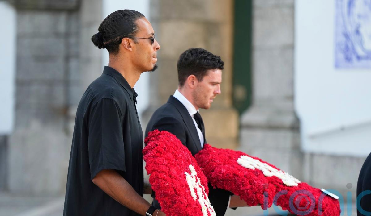 Liverpool’s squad were united in their grief as they said farewell to team-mate Diogo Jota at the forward’s funeral in Portugal.