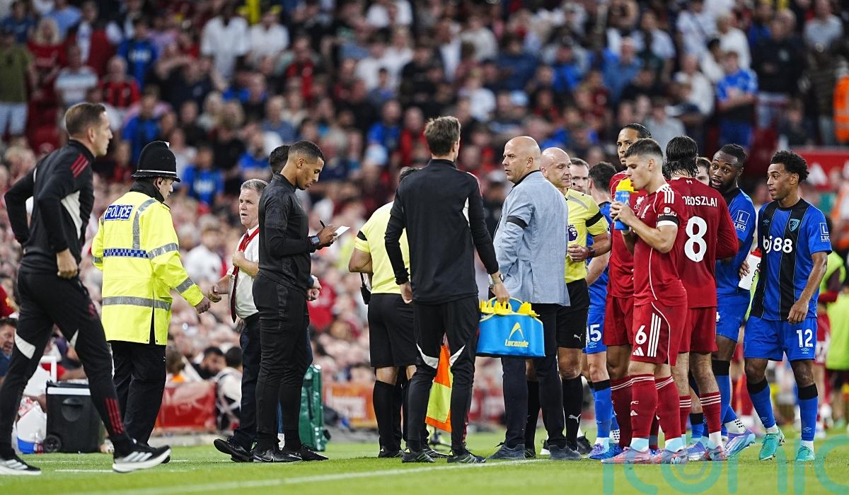Match referee Anthony Taylor stopped play in the 29th minute and spoke with managers Arne Slot and Andoni Iraola before respective captains Virgil van Dijk and Adam Smith were called over to the dug-outs.