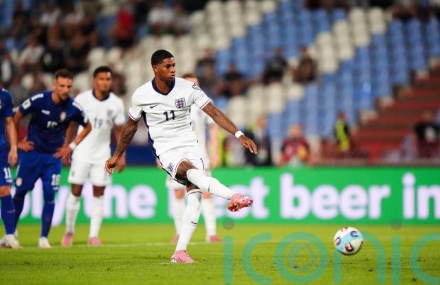 Ezri Konsa added another shortly after the break and Marc Guehi scored after Nikola Milenkovic’s sending-off, with substitute Marcus Rashford’s spot-kick wrapping up a statement win.