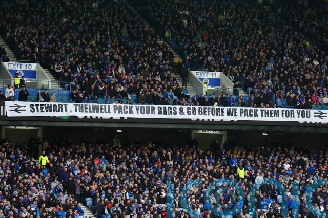 Gers fans disgruntled by the failure of Martin, the start to the season where Rangers were also bounced out of the Champions League play-off on a 9-1 aggregate defeat by Belgian side Club Brugge, and latterly the new boss recruitment process, have turned against chief executive Patrick Stewart and sporting director Kevin Thelwell.