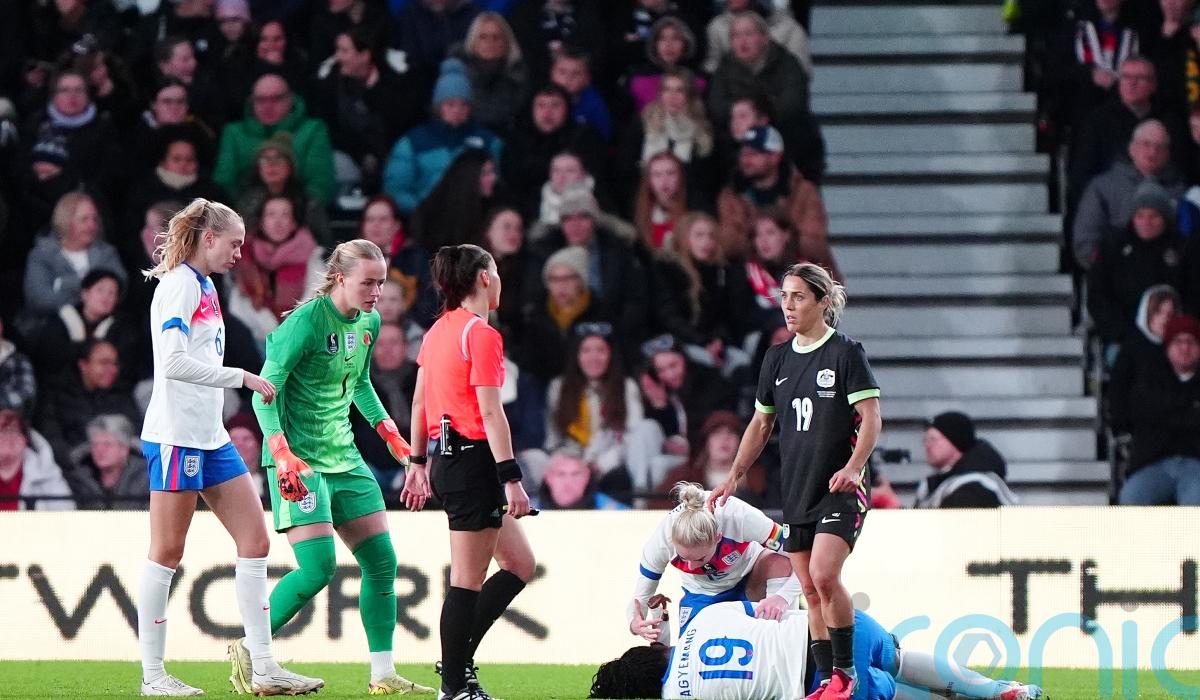 The Lionesses’ 3-0 friendly win at Pride Park was overshadowed by Agyemang having to be carried off on a stretcher.