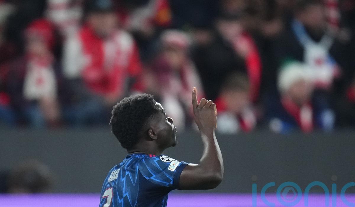Saka drilled the penalty home in the 32nd minute, his fifth goal of the season in all competitions and second in this season’s Champions League.