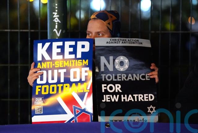 One of the messages, beside a Star of David, read “Ban hatred not fans” while another carried a quote from Thierry Henry saying football is not about goals but bringing people together.