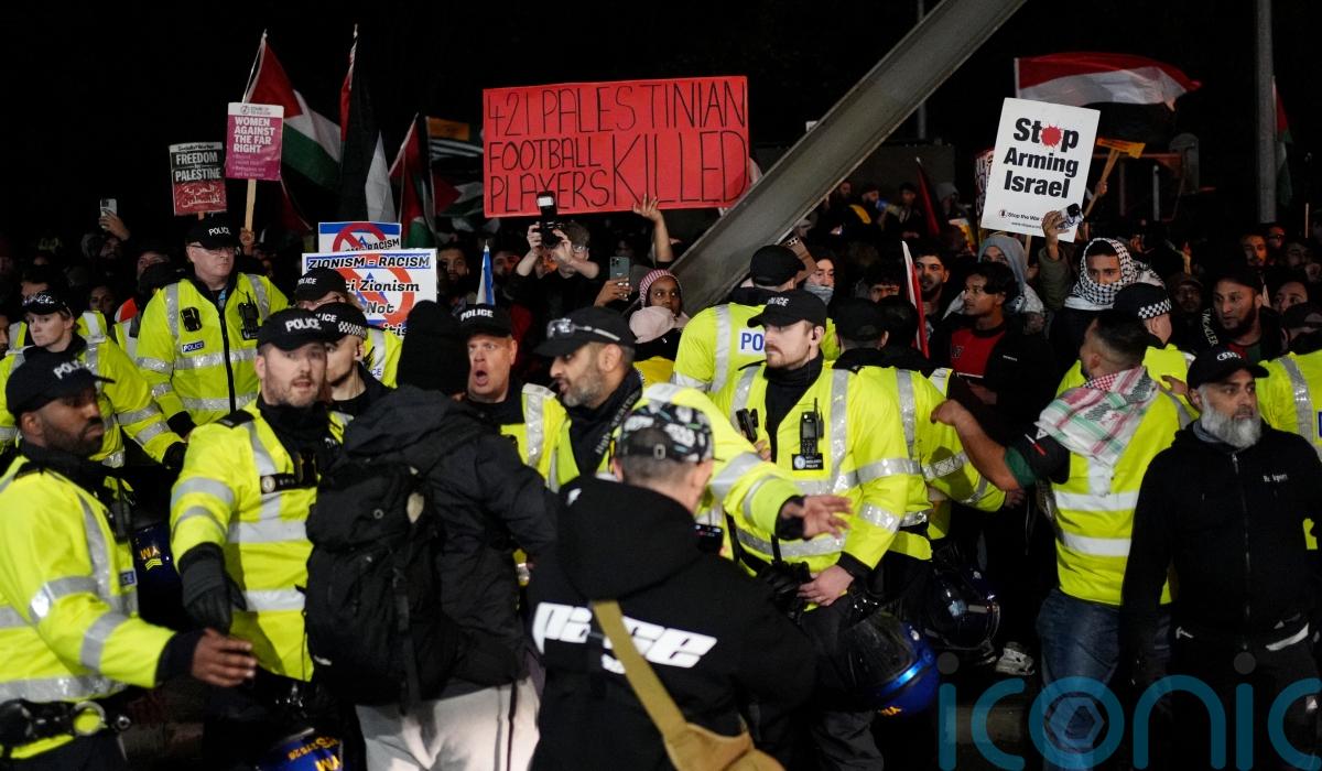 A pro-Palestine protest was held outside the Villa’s stadium before kick-off, where hundreds turned up with Palestinian flags and anti-Israeli banners.