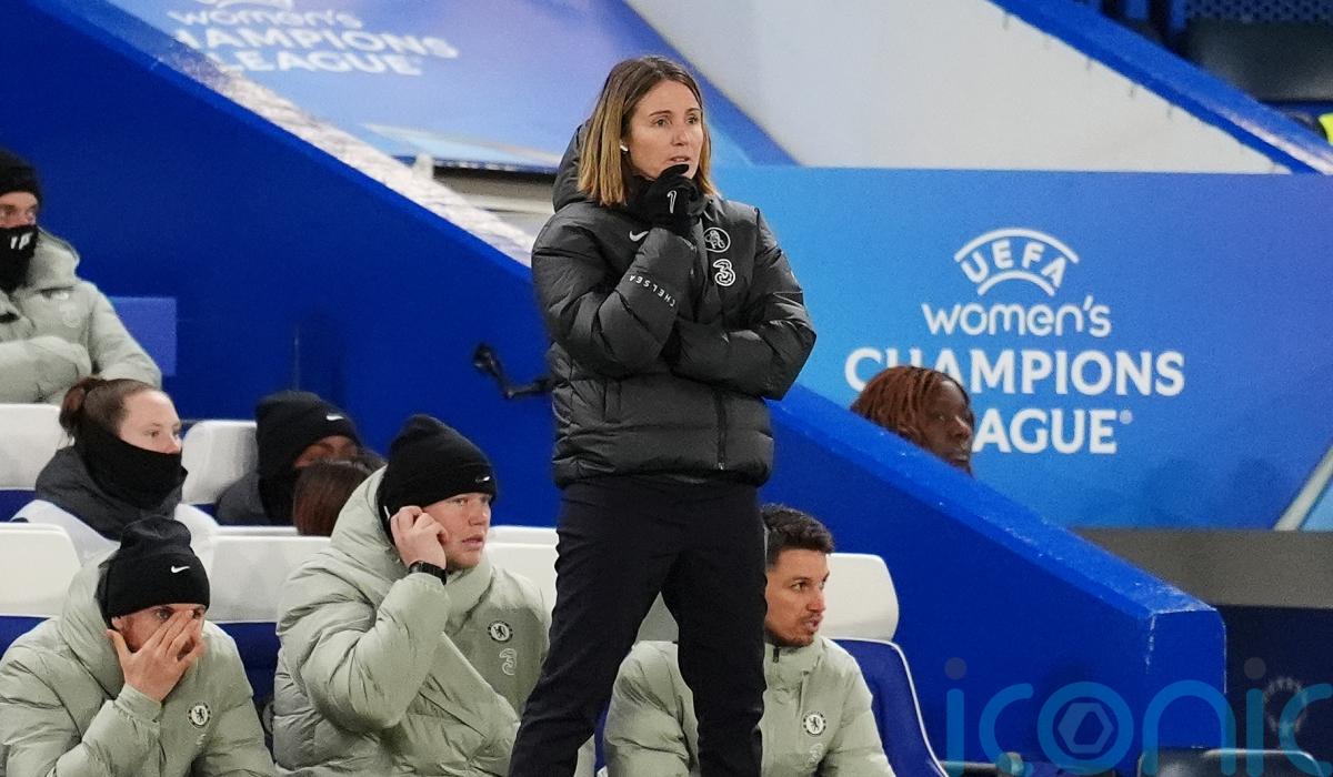 Sonia Bompastor’s team went ahead after 14 minutes through a strike from Ellie Carpenter, but Ewa Pajor soon levelled before a there was a lengthy stoppage due to technical difficulties – as the TV screens inside Stamford Bridge went down as did the audio equipment of referee Tess Olofsson.