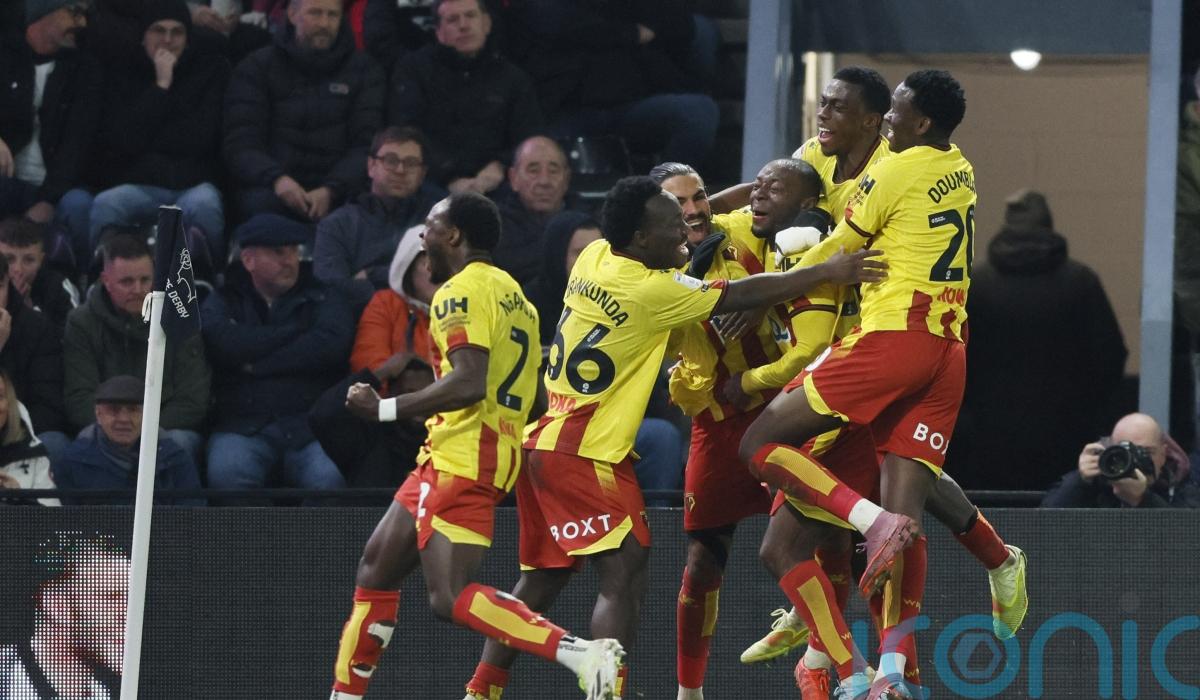 Watford staged a stunning late comeback to beat Derby 3-2 at Pride Park and celebrate a first away win since February.