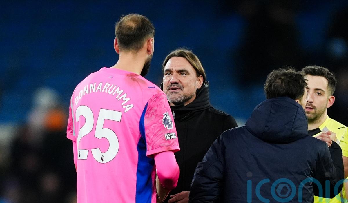 Daniel Farke suggested Manchester City goalkeeper Gianluigi Donnarumma went down with a “fake injury” during Leeds’ defeat at the Etihad Stadium.
