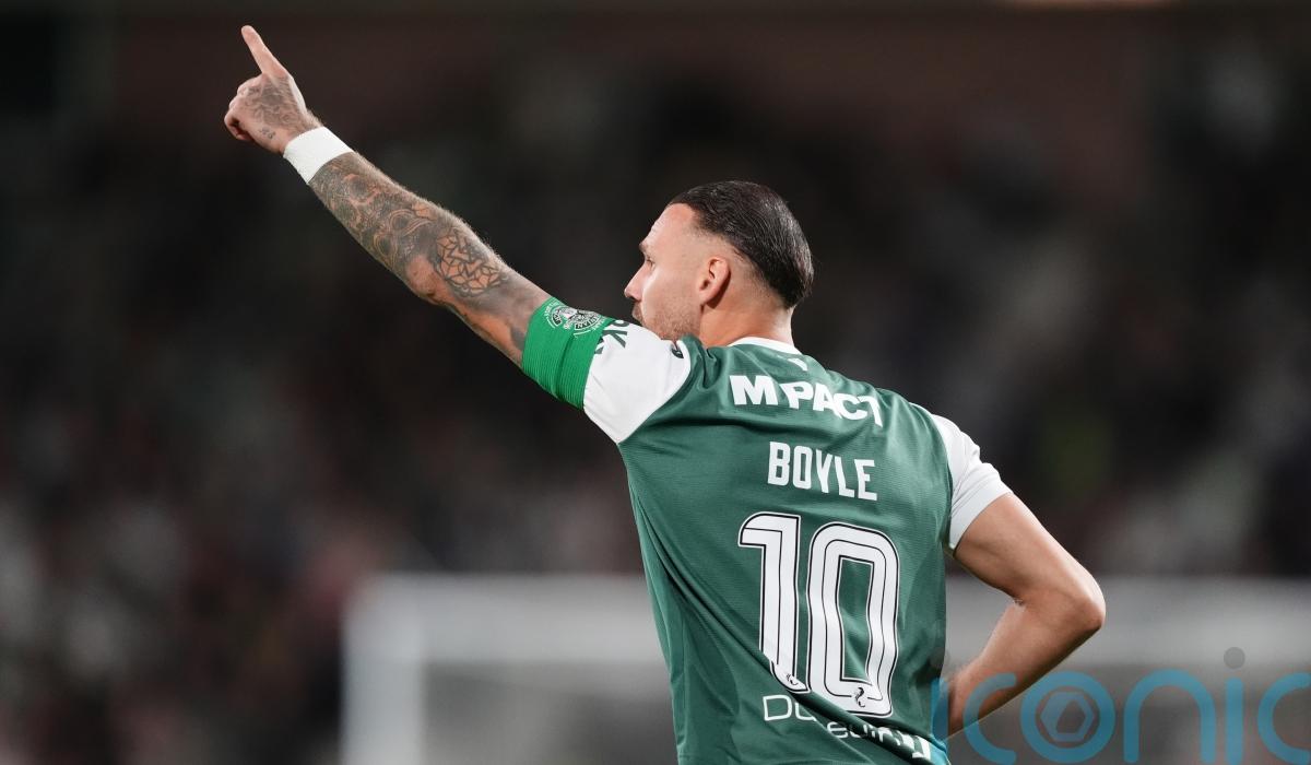 Hibs made four alterations to the side that lost to Rangers on Monday with Zach Mitchell making his debut for the ill Warren O’Hora, while Nicky Cadden, Kanayo Megwa and Boyle came in for Jordan Obita, Elie Youan and Chris Cadden, who was unavailable due to personal reasons.