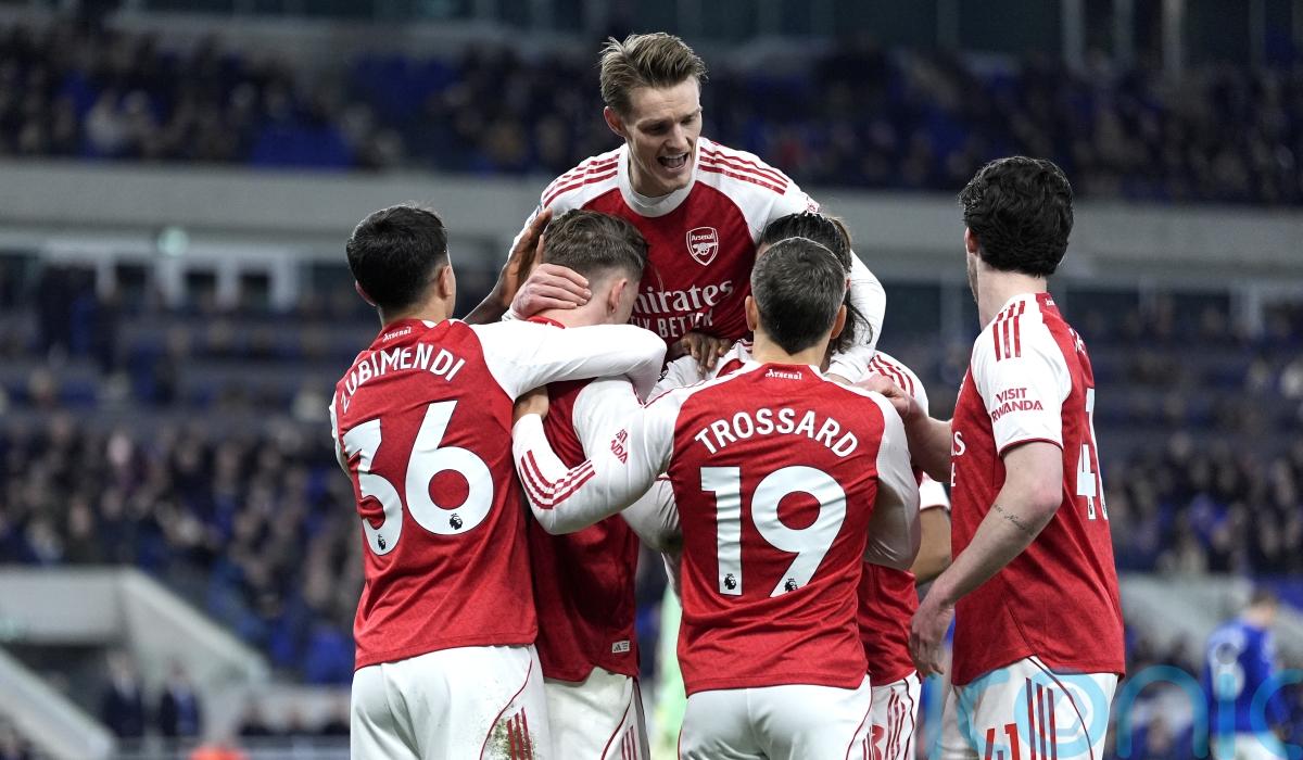 Long-time Premier League leaders Arsenal passed the first real test of their title credentials after briefly being overtaken by Manchester City but they were indebted to a moment of madness from Everton’s Jake O’Brien.