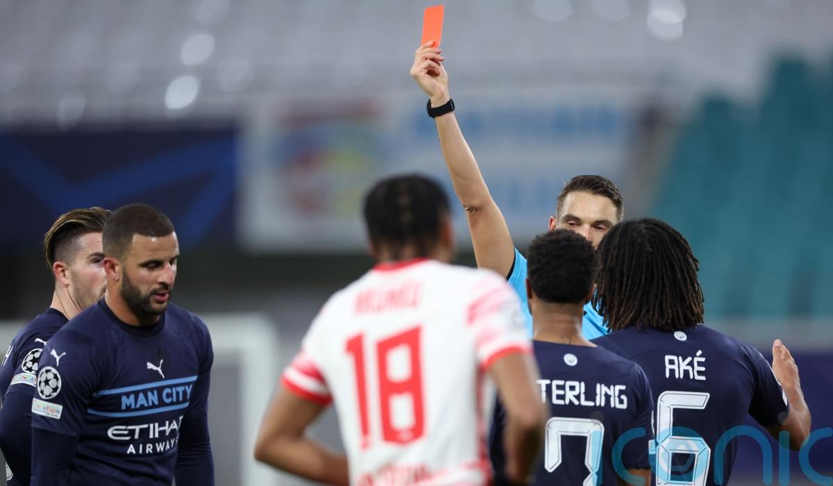 Kyle Walker has been banned for Manchester City’s next three European matches for his sending-off against Leipzig last month, UEFA has announced.