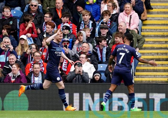 The City players watched on their coach ride up the M66 as Liverpool beat Watford 2-0 to temporarily reach the summit, but responded with first-half goals from Kevin De Bruyne and Ilkay Gundogan to retain their one-point advantage.