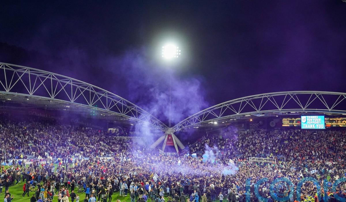 Some Terriers fans invaded the pitch after their side beat Luton 1-0 in the second leg at the John Smith’s Stadium to secure a 2-1 aggregate win.