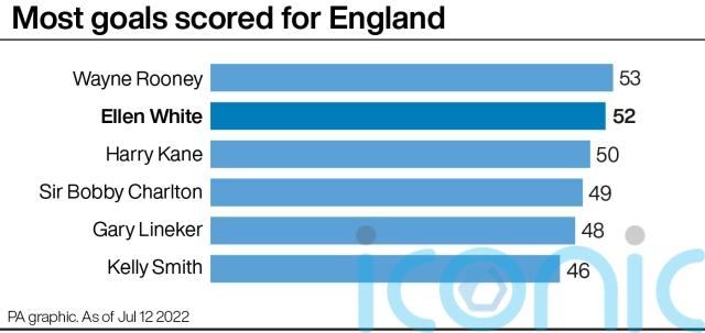 Rooney scored 53 England goals, with White now looking sure to beat Kane to that landmark as Sarina Wiegman’s side are assured of at least two more games at Euro 2022, and up to four, before the men’s side play again.