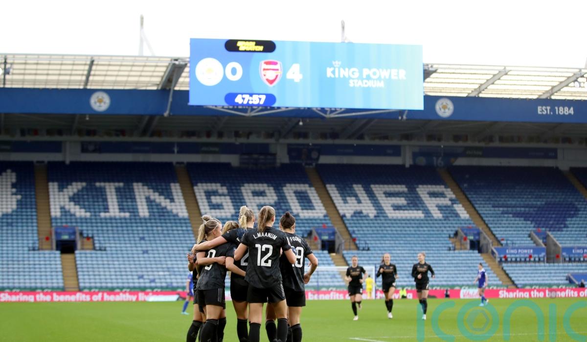 Arsenal continued their perfect start to the Women’s Super League season with a 4-0 win at bottom side Leicester to move top of the table.