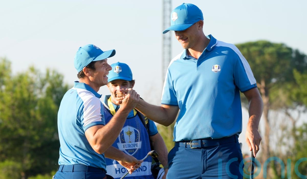 World number four Viktor Hovland was proving to be the star for Europe in the early stages of the Ryder Cup in Rome.