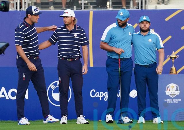 The American had the honour of leading off in front of a fervent home crowd surrounding Marco Simone’s first tee and while his drive was less impressive than Jon Rahm’s he made up for his with his second, his team’s third in the foursomes format, but his ball lipped out.