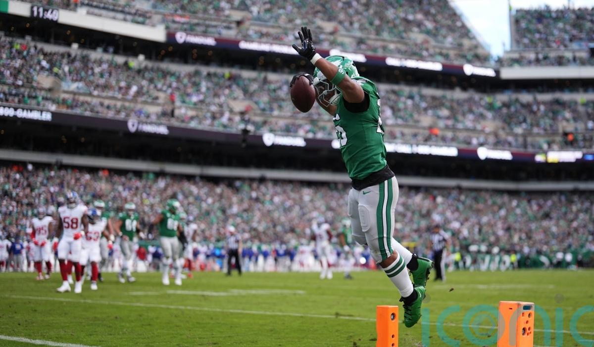 Jalen Hurts threw two more touchdowns to tight end Dallas Goedert and one to Jahan Dotson.