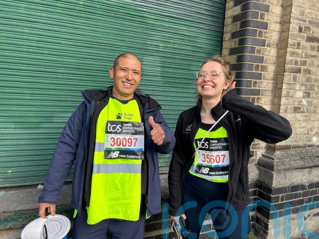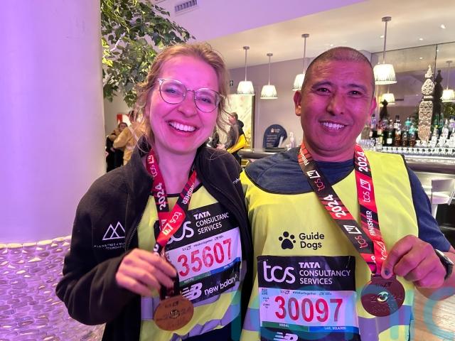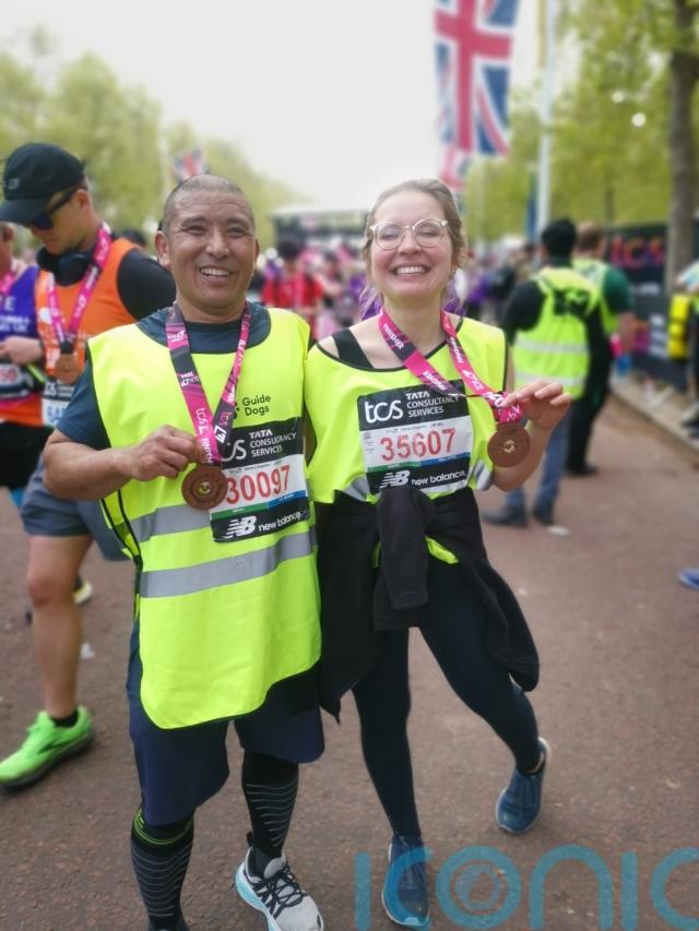 “It was a team effort because he was guiding me,” Karolina, who ran the marathon to help raise money for the charity Guide Dogs, told PA Real Life.