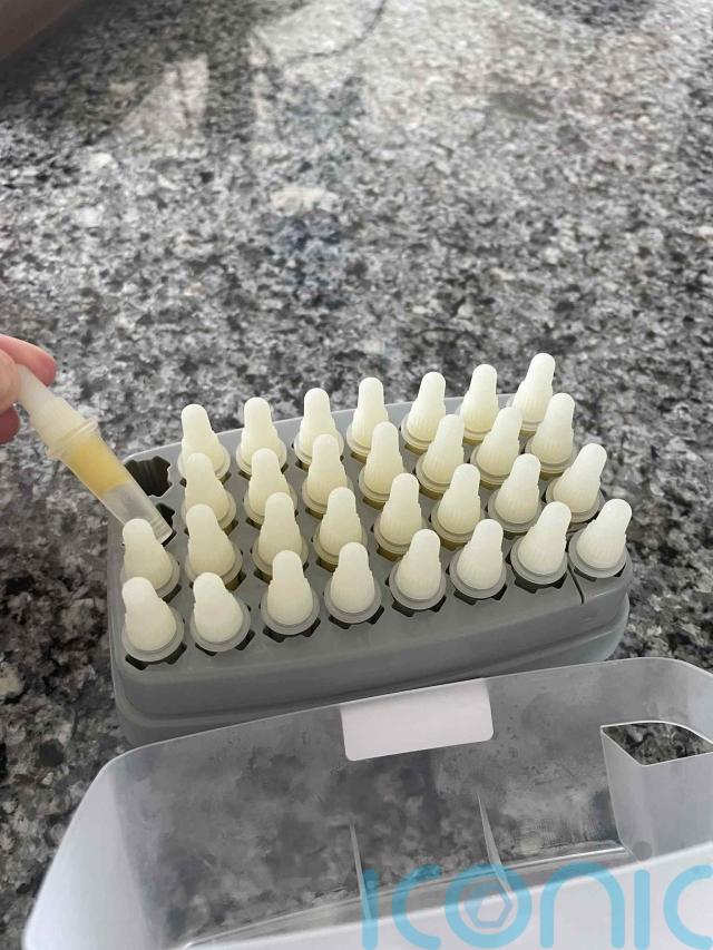 This is then diluted with a preservative-free saline solution before Melanie can apply the drops to her eyes.