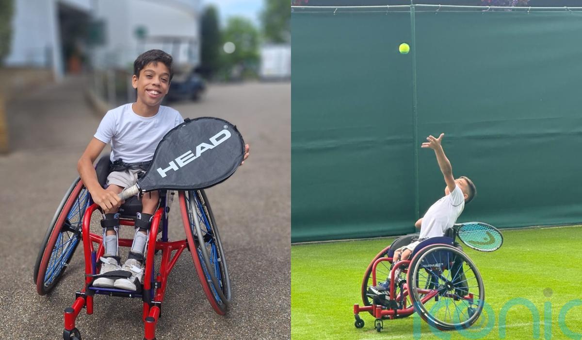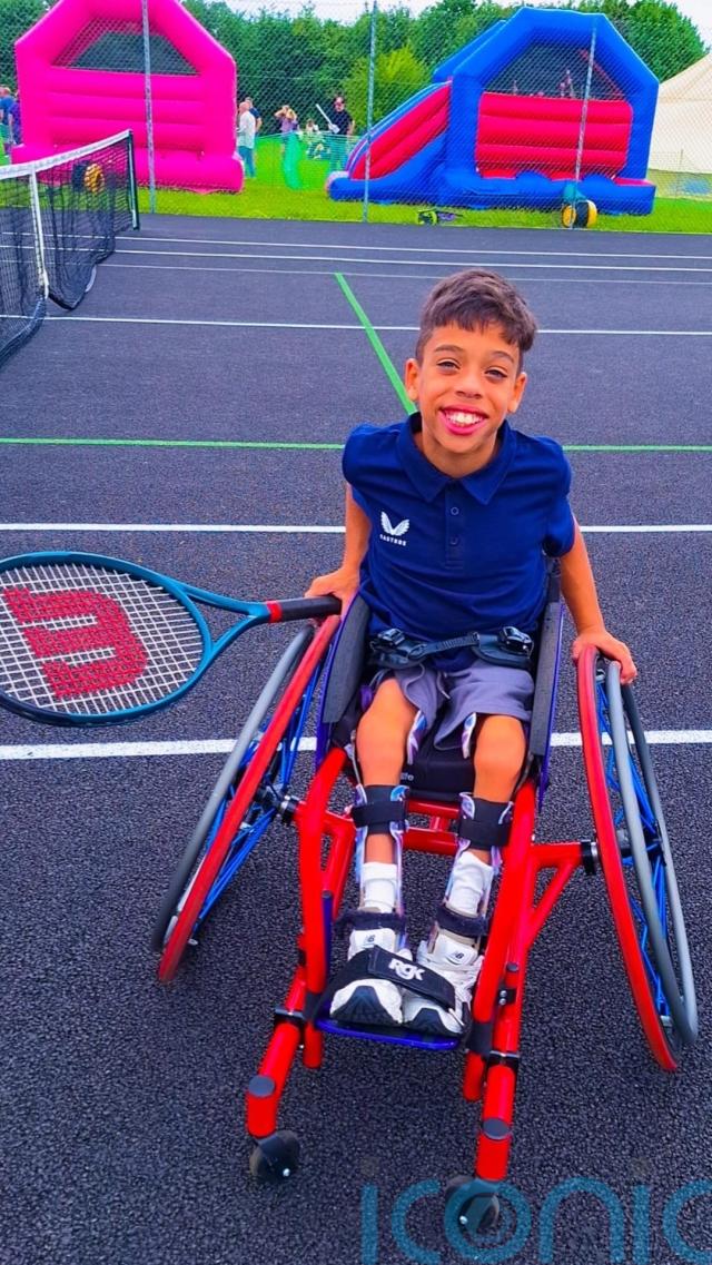 A nine-year-old boy with a rare spinal condition is aiming to reach the top of wheelchair tennis to play at Wimbledon in the future, saying he will “not be defined by (his) spine”.