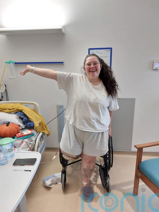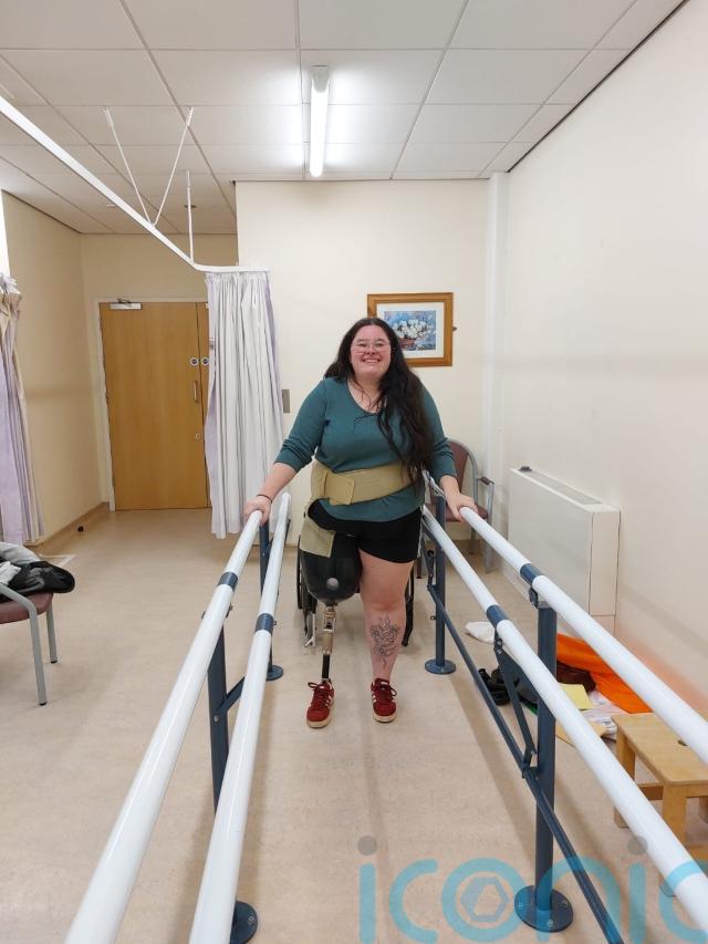 As her blood vessels and nerves were “completely encased” by the tumour, Sophie was informed the only option was an above-the-knee amputation, which she received in December 2024 – and she is now adapting to life with a prosthetic.