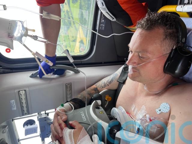The paramedics were quickly on the scene, and in total Chris received five rounds of shocks from the defibrillator – one administered by Robin, four by the paramedics – and had CPR for around 30 minutes before being airlifted to Bristol Royal Infirmary for further treatment.