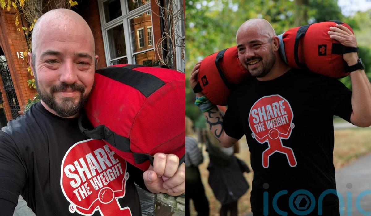 Andrew Baines Vosper, 43, got the inspiration to start his social media page ‘Share the Weight’ after securing a place to run the London Marathon in 2024 with the charity Samaritans, after volunteering with them for nine years.