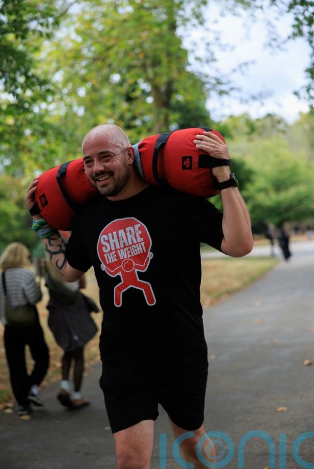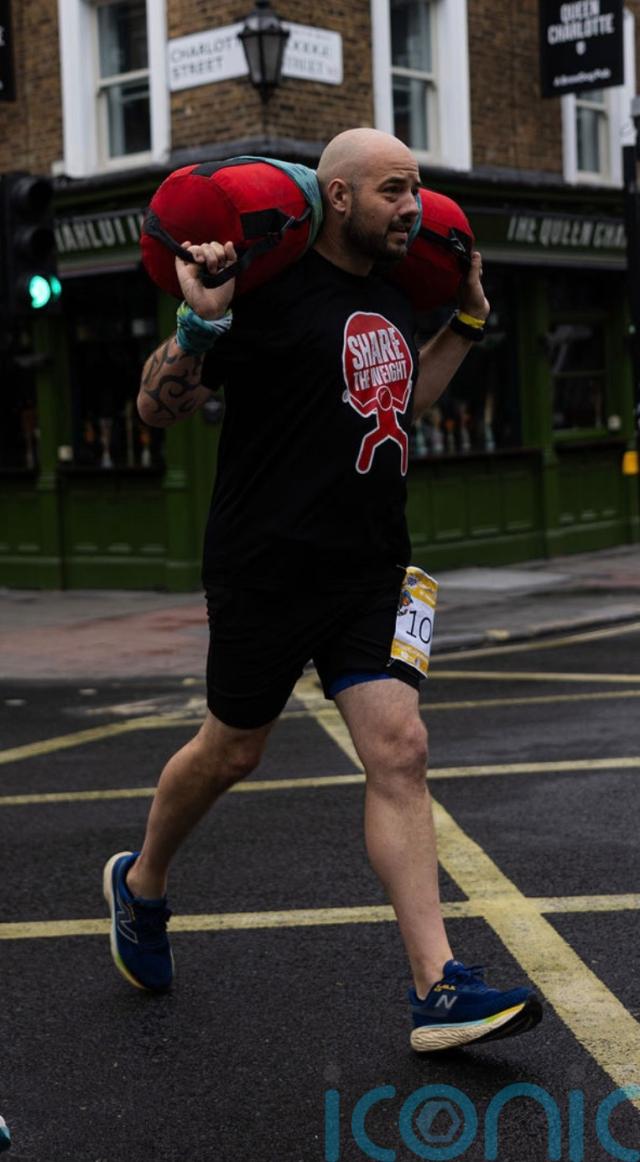 A dad of two ran the London Marathon with a 24.7kg bag – representing the weight of life’s worries that we carry 24 hours a day, seven days a week – on his back, and he has continued carrying that weight at local run clubs and races to raise awareness of mental health.