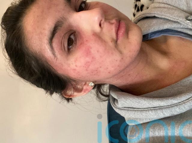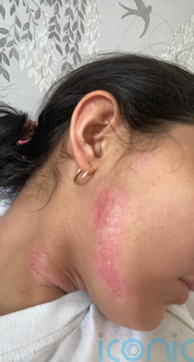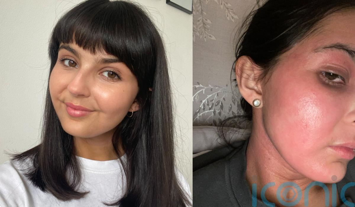 Anisha Joshi, 24, from Telford, Shropshire, was in agony when red and sore blotches appeared across her face overnight in November 2021 and became infected.