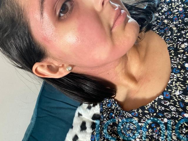 While Anisha’s face is still recovering, she is cautious with what products she puts on her skin.