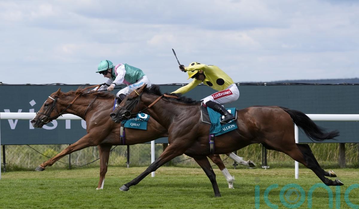 But the race did not go to script, with Qirat keeping up the gallop to emerge triumphant under Richard Kingscote, despite the best efforts of Rosallion, who was a neck adrift at the line.