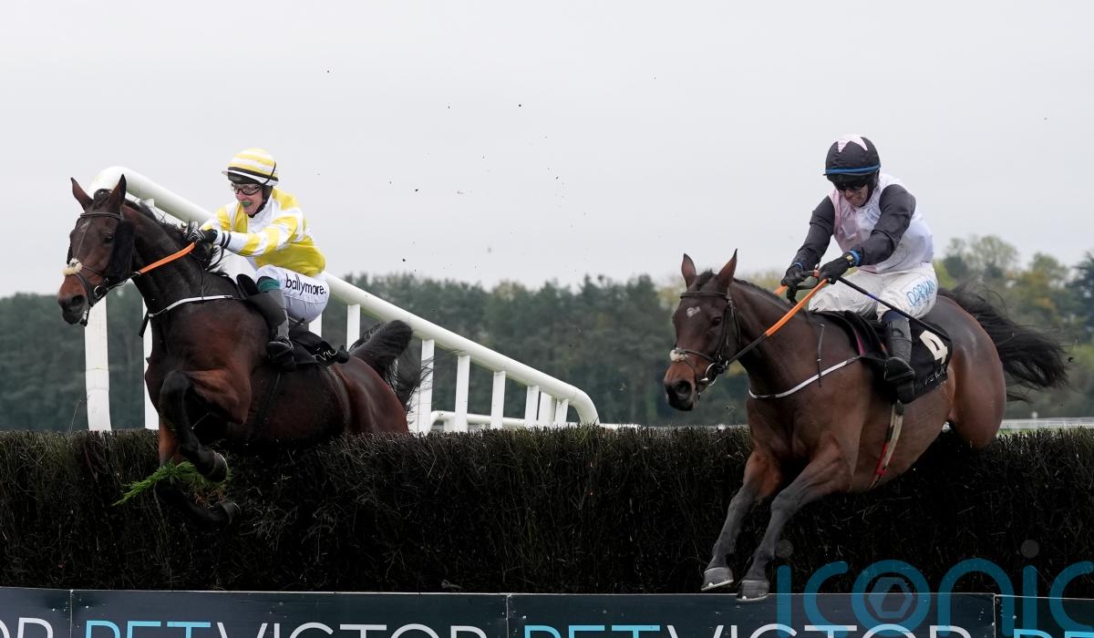 With Darragh O’Keeffe in the saddle for his reappearance, Heart Wood tracked Monbeg Park into the home straight and there was little to choose between the pair before De Bromhead’s charge winged the final fence and landed running, asserting late on to prevail by a length and three-quarters.
